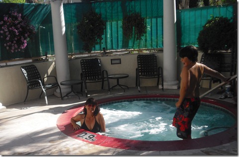Relaxing in Jacuzzi with oldest son the night prior to Bulldog 50k